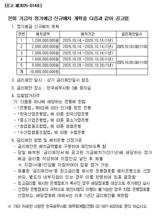 Á¤±â¿¹±Ý ½Å±Ô¿¹Ä¡ °èȹ °ø°í