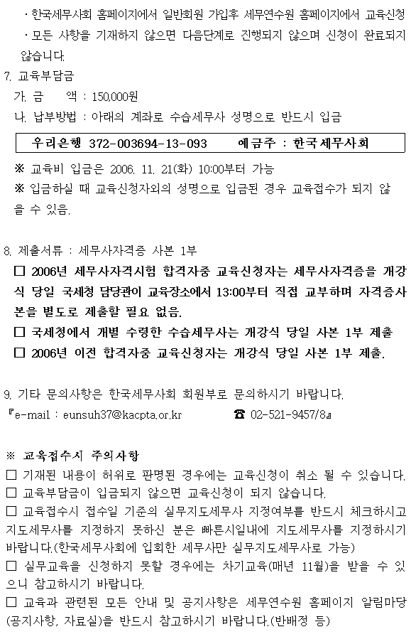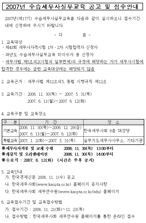 2007³â ¼ö½À¼¼¹«»ç½Ç¹«±³À° °ø°í ¹× Á¢¼ö¾È³»