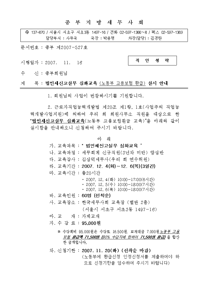 [ÁߺÎ] ¹ýÀμ¼ °í¿ëº¸Çè°ü±Þ±³À° ½Ç½Ã ¾È³»