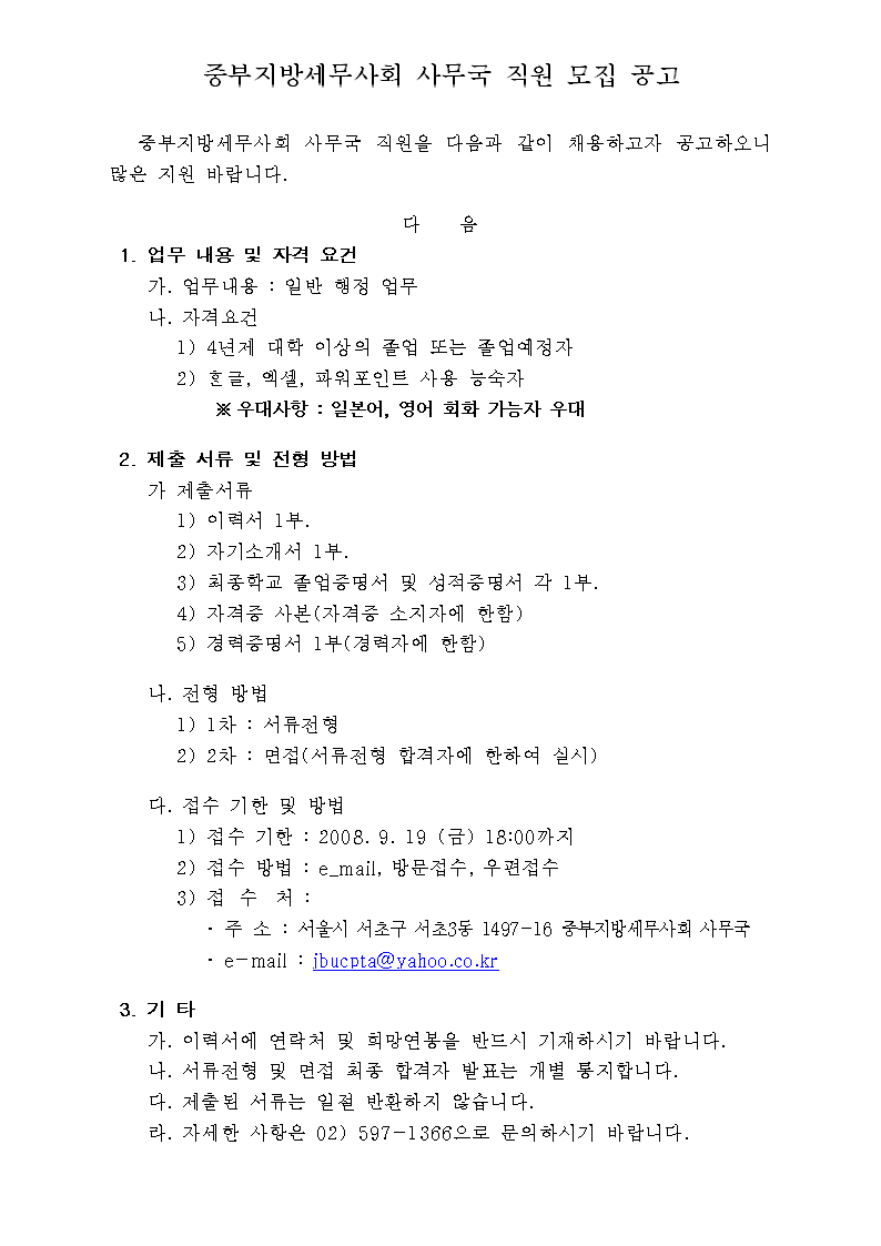 ÁߺÎÁö¹æ¼¼¹«»çȸ »ç¹«±¹ Á÷¿ø ¸ðÁý °ø°í