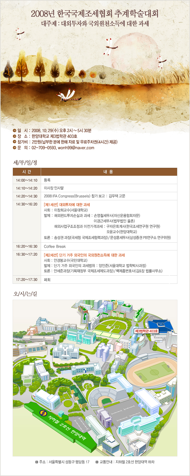 ´ÙÀ½°ú °°ÀÌ 2008³â Çѱ¹±¹Á¦Á¶¼¼ÇùȸÀÇ Ãß°èÇмú´ëȸ°¡ °³ÃֵǾî ȸ¿ø´Ô ¿©·¯ºÐ²² ¾Ë·Áµå¸³´Ï´Ù. ´ëÁÖÁ¦ : ´ë¿ÜÅõÀÚ¿Í ±¹¿Ü¿øÃµ¼Òµæ¿¡ ´ëÇÑ °ú¼¼ ÀÏ ½Ã : 2008. 10. 29 (¼ö) ¿ÀÈÄ 2½Ã - 5½Ã 30ºÐ Àå ¼Ò : ÇѾç´ëÇб³ Á¦3¹ýÇаü 403È£ Âü°¡ºñ : 2¸¸¿ø(³³ºÎÇÑ ºÐ¿¡ ÇÑÇØ ÀÚ·á ¹× ¹«·áÁÖÂ÷±Ç(4½Ã°£) Á¦°ø) ¹® ÀÇ : 02) 709-0593 * ÀÚ¼¼ÇÑ ³»¿ëÀº ÷ºÎÇÑ ÆÄÀÏÀ» È®ÀÎÇϽñ⠹ٶø´Ï´Ù. |