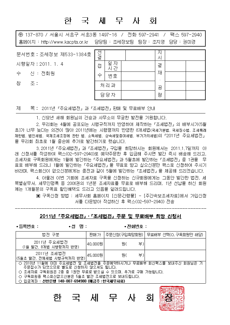 2011³â ÁÖ¿ä¼¼¹ýÀü °ú Á¶¼¼¹ýÀü ÆÇ¸Å ¹× ¹«·á¹èºÎ ¾È³»