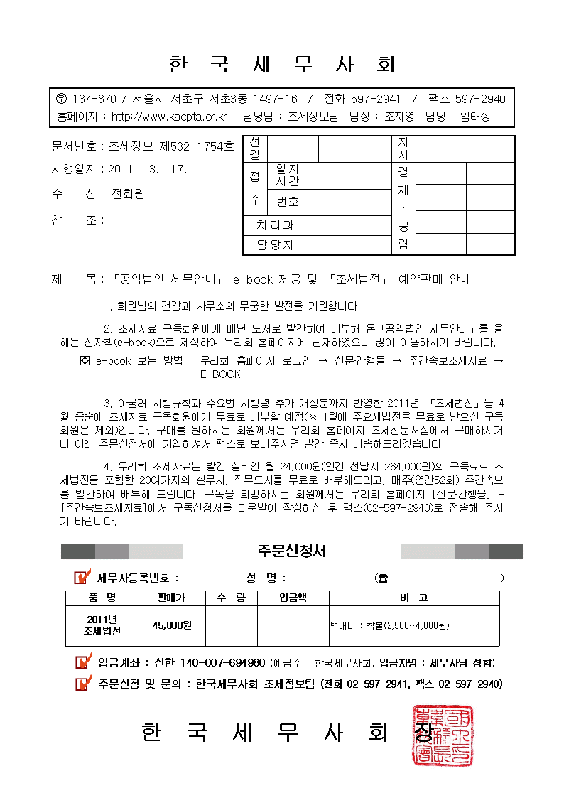 °øÀ͹ýÀÎ ¼¼¹«¾È³» e-book Á¦°ø ¹× Á¶¼¼¹ýÀü ¿¹¾àÆÇ¸Å ¾È³»