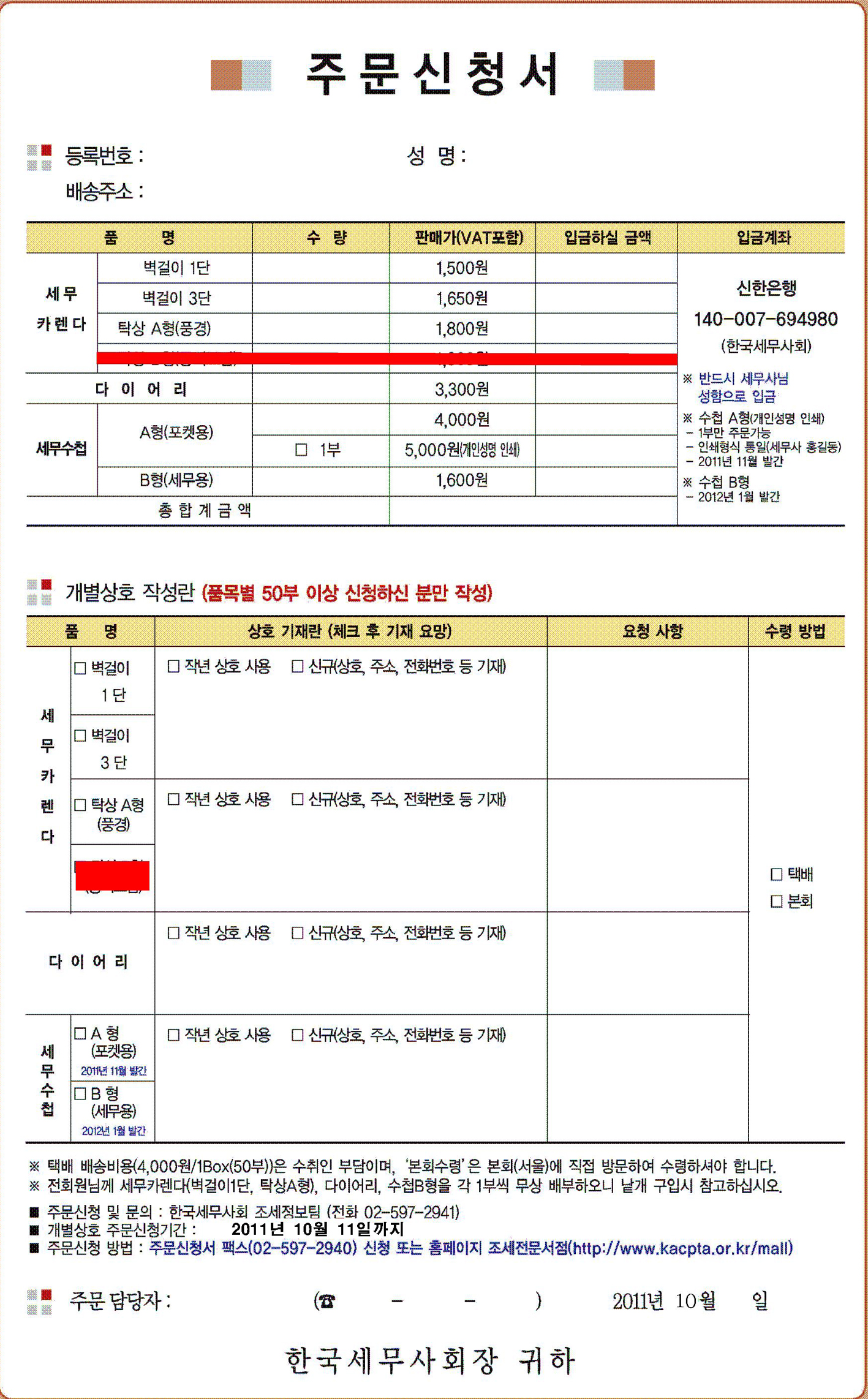 2012³â ¼¼¹«Ä«·»´Ù(º®°ÉÀÌ.Ź»ó) ¹× ´ÙÀ̾, ¼¼¹«¼öø ÁÖ¹®½Åû±â°£ ¿¬Àå ¾È³»