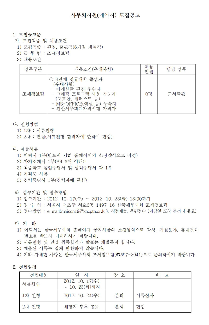 »ç¹«Ã³Á÷¿ø(°è¾àÁ÷) ¸ðÁý°ø°í