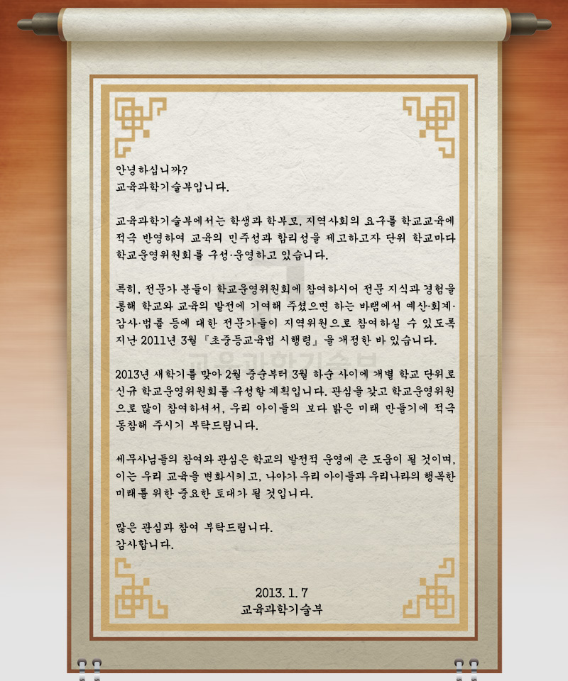 | ±ÛÁ¦¸ñ | Çб³¿î¿µÀ§¿øÈ¸ Àü¹®°¡ Âü¿© ¾È³» |