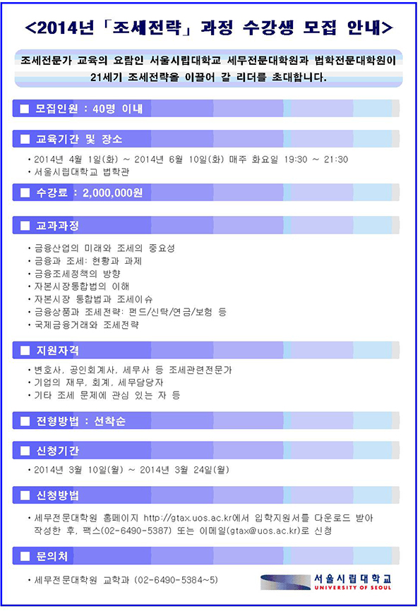 Á¦4±â_¼¿ï½Ã¸³´ë_¼¼¹«Àü¹®´ëÇпø_Á¶¼¼Àü·«°úÁ¤_¾È³»_2014³â 3¿ù.hwp