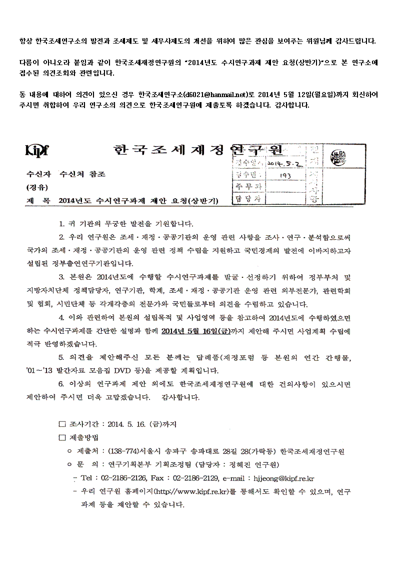 Çѱ¹Á¶¼¼ÀçÁ¤¿¬±¸¿ø ¿¬±¸°úÁ¦°ü·Ã ÀǰßÁ¶È¸