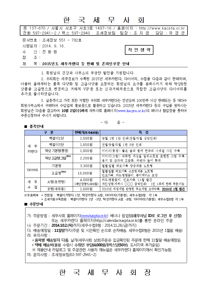 2015³âµµ ¼¼¹«Ä«·»´Ù µî ÆÇ¸Å ¹× ¿Â¶óÀÎÁÖ¹® ¾È³»