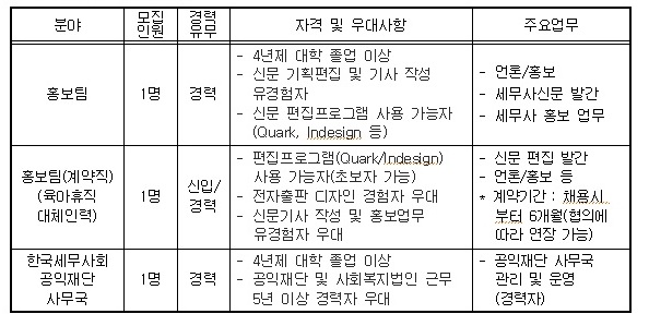 Çѱ¹¼¼¹«»çȸ Á÷¿ø ä¿ë °ø°í °¡. ä¿ëºÐ¾ß ¹× ÀÚ°Ý¿ä°Ç