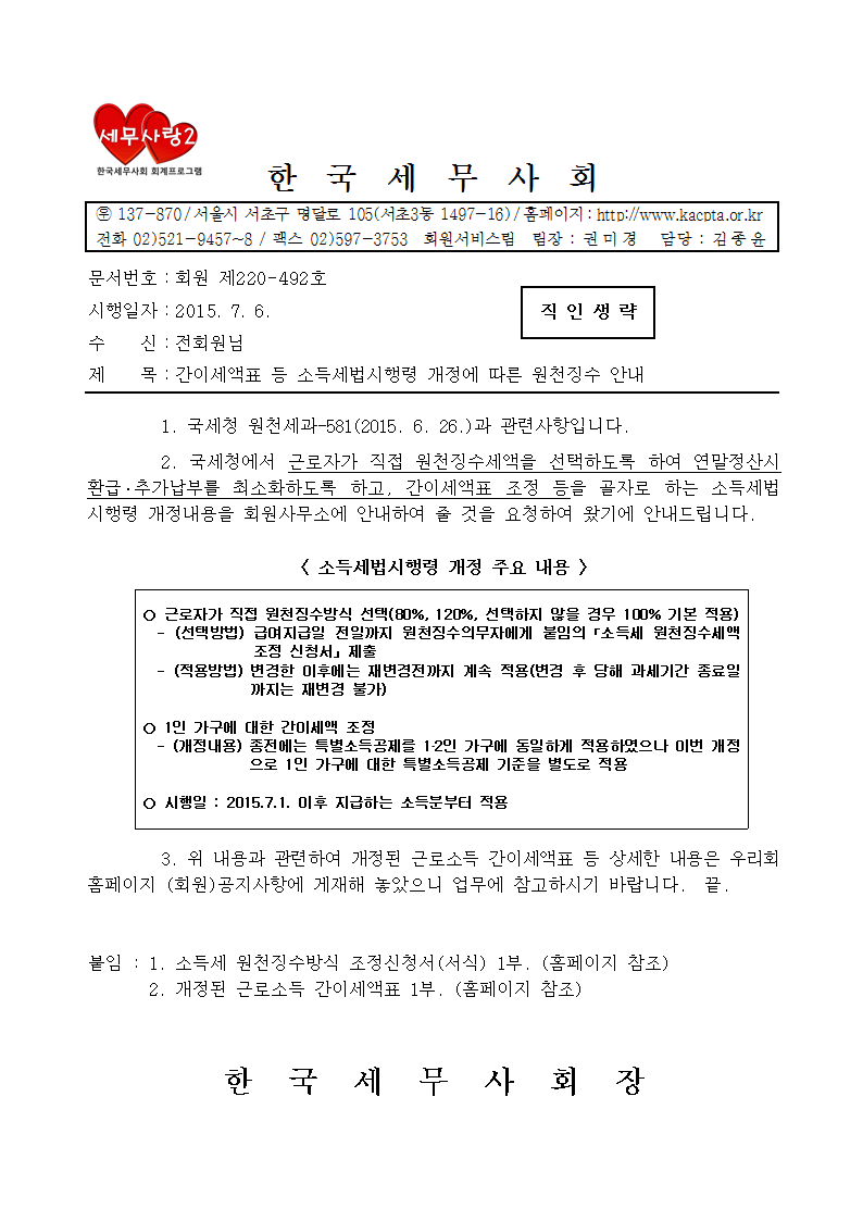 °£À̼¼¾×Ç¥ µî ¼Òµæ¼¼¹ý½ÃÇà·É °³Á¤¿¡ µû¸¥ ¿øÃµÂ¡¼ö ¾È³»