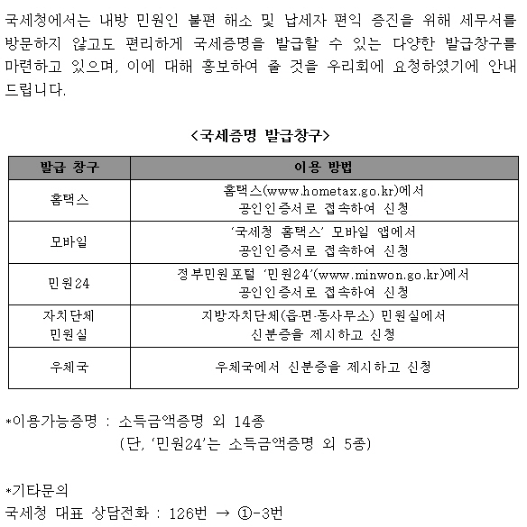 ±¹¼¼Áõ¸í, ¼¼¹«¼¸¦ ¹æ¹®ÇÏÁö ¾Ê°íµµ Æí¸®ÇÏ°Ô ¹ß±Þ ¹ÞÀ» ¼ö ÀÖ½À´Ï´Ù.