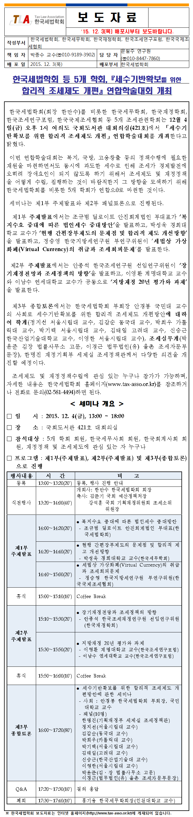 Çѱ¹¼¼¹ýÇÐȸ µî 5°³ ÇÐȸ,¡º¼¼¼ö±â¹ÝÈ®º¸¸¦ À§ÇÑ ÇÕ¸®Àû Á¶¼¼Á¦µµ °³Æí¡»¿¬ÇÕÇмú´ëȸ °³ÃÖ