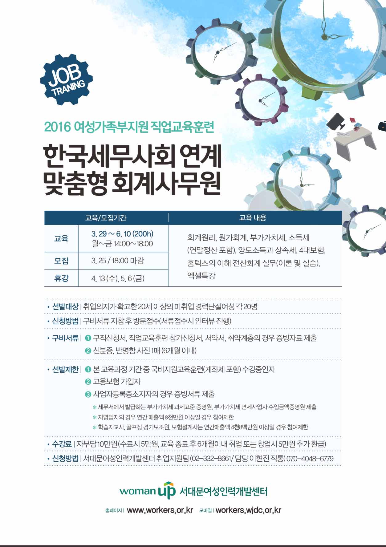 | ±ÛÁ¦¸ñ | ¼´ë¹®¿©¼ºÀη°³¹ß¼¾ÅÍ Á÷¾÷±³À°ÈÆ·Ã 'Çѱ¹¼¼¹«»çȸ ¿¬°è ¸ÂÃãÇü ȸ°è»ç¹«¿ø' Âü°¡ÀÚ ¸ðÁý ¾È³» |