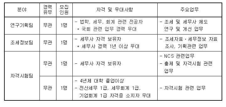 Çѱ¹¼¼¹«»çȸ Á÷¿ø ä¿ë °ø°í °¡. ä¿ëºÐ¾ß ¹× ÀÚ°Ý¿ä°Ç