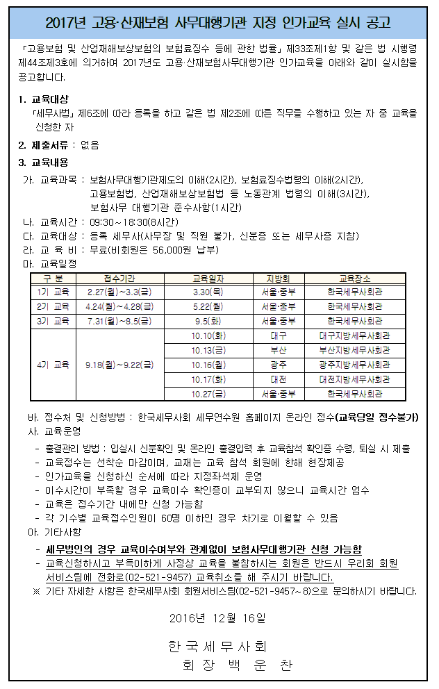 2017³â °í¿ë »êÀ纸Çè »ç¹«´ëÇà±â°ü ÁöÁ¤ Àΰ¡±³À° °èȹ °ø°í
