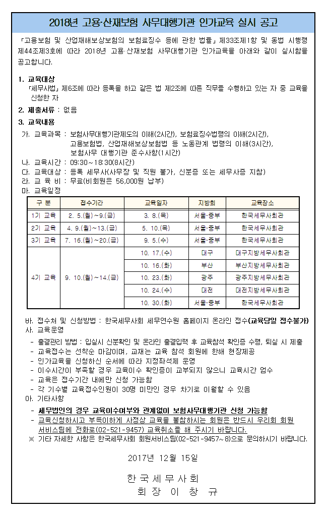 2018³â °í¿ë»êÀ纸Çè »ç¹«´ëÇà±â°ü Àΰ¡±³À° °èȹ °ø°í(2017. 12. 15.).hwp