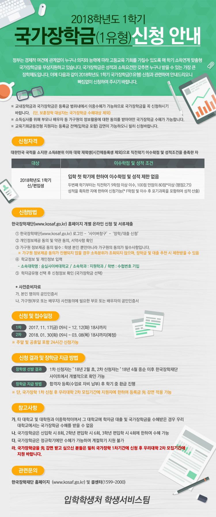 2018-1 ¼þ½Ç»çÀ̹ö´ëÇб³ ¸ðÁý¿ä°.pdf ¼þ½Ç»çÀ̹ö´ëÇб³ 2018Çг⵵ 1Çб⠱¹°¡ÀåÇÐ±Ý ½Åû ¾È³».jpg |