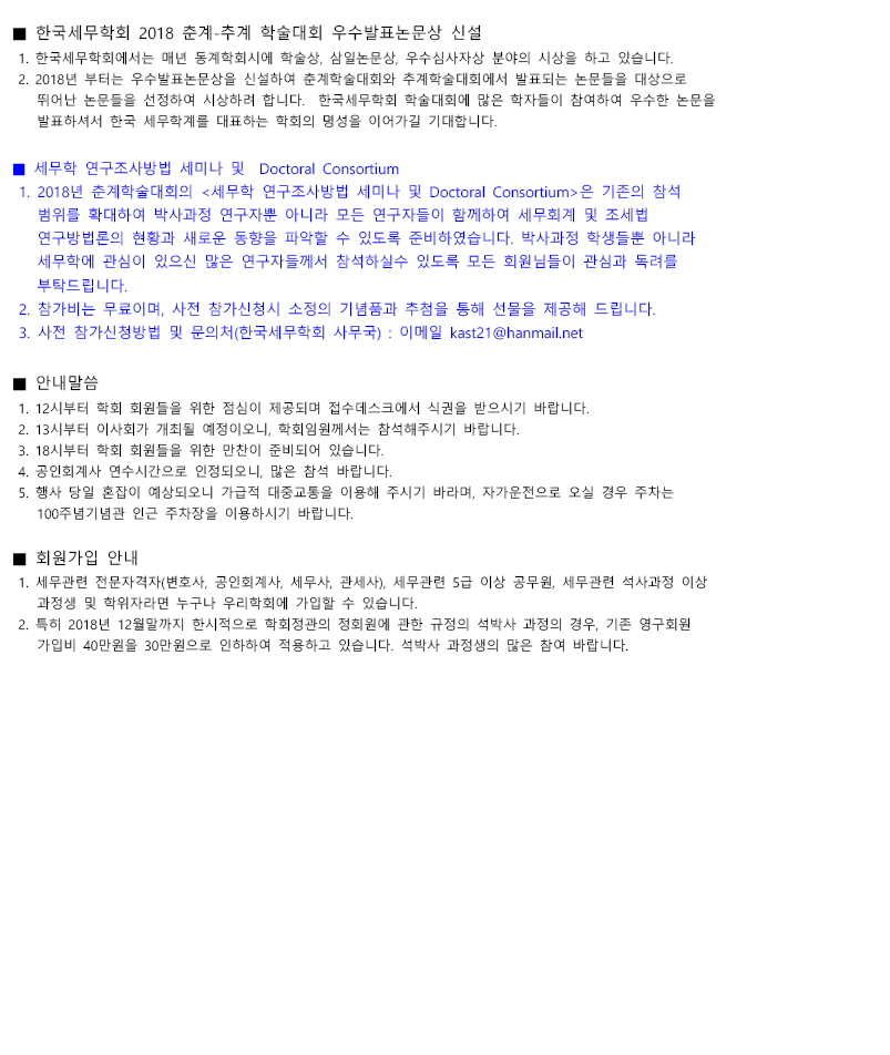 2018 Çѱ¹¼¼¹«ÇÐȸ Ãá°èÇмú¹ßÇ¥´ëȸ ÃÊû °øÁö
