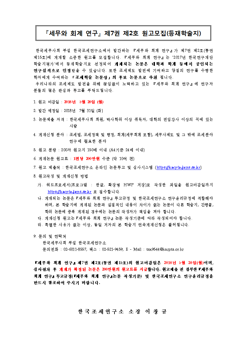 ¡º¼¼¹«¿Í ȸ°è ¿¬±¸¡» Á¦7±Ç Á¦2È£ ¿ø°í¸ðÁý(µîÀçÇмúÁö)