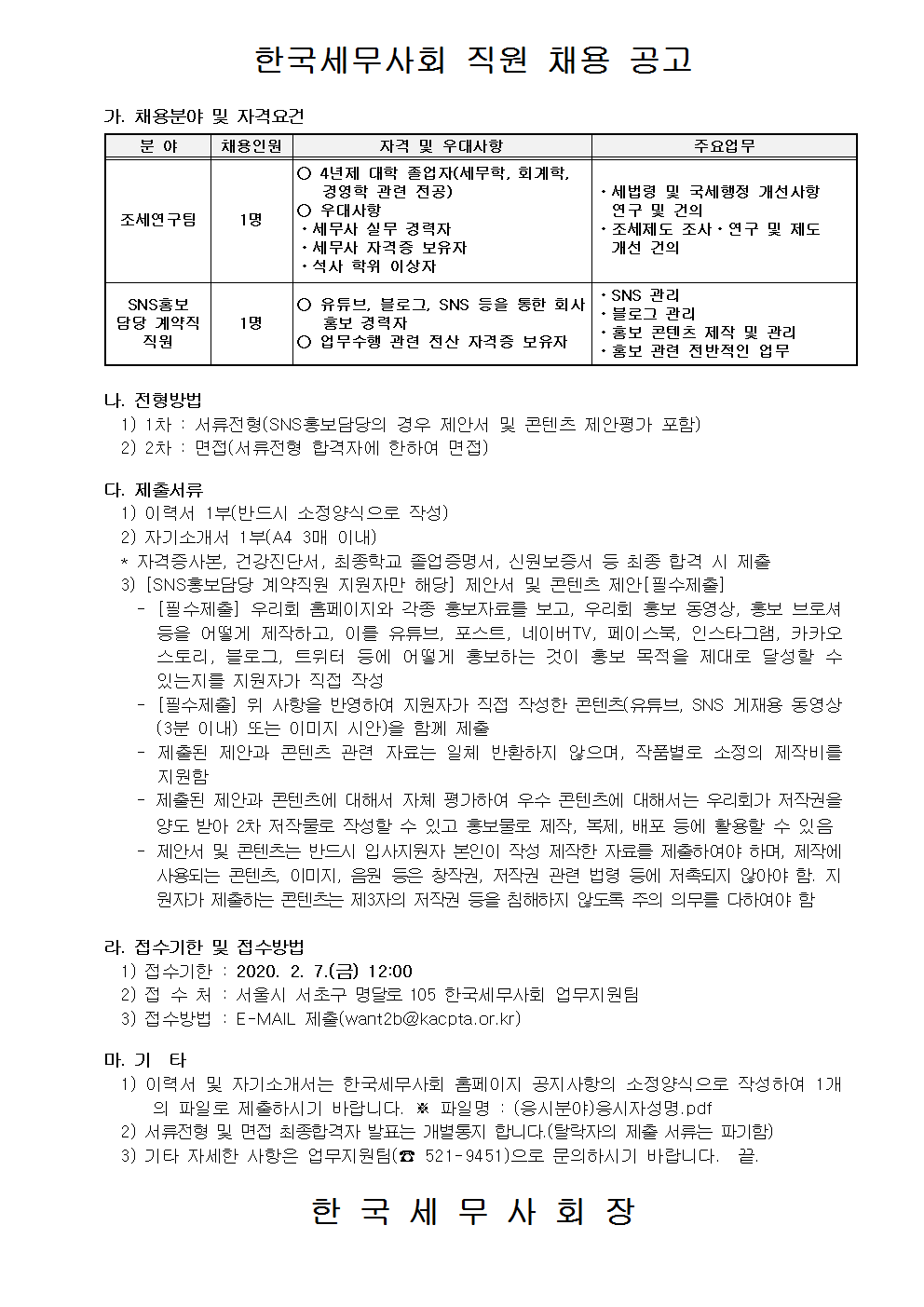 Çѱ¹¼¼¹«»çȸ Á÷¿ø ä¿ë °ø°í