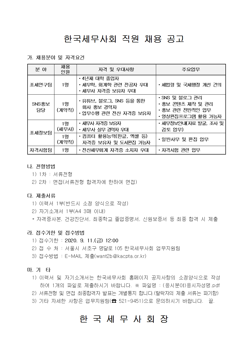 Çѱ¹¼¼¹«»çȸ Á÷¿ø ä¿ë °ø°í