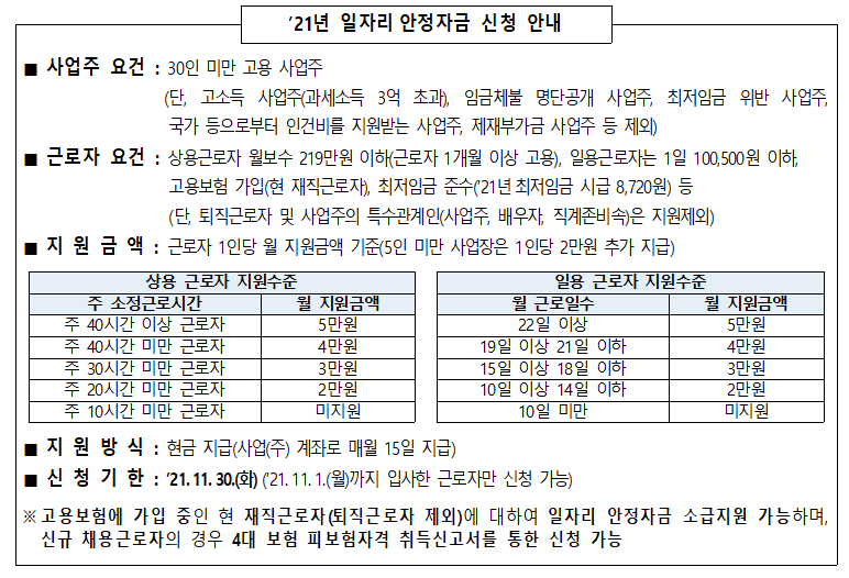 ±ÛÁ¦¸ñ '21³âµµ ÀÏÀÚ¸® ¾ÈÁ¤ÀÚ±Ý ½Åû ¾È³»