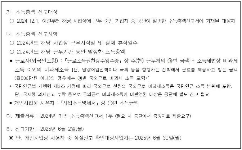1. ȸ¿ø´ÔÀÇ °Ç°°ú »ç¾÷ÀÇ ¹øÃ¢À» ±â¿øµå¸³´Ï´Ù. 2. ±¹¹Î¿¬±Ý°ø´Ü¿¡¼ 2024³â ±Í¼Ó ±¹¹Î¿¬±Ý ¼ÒµæÃÑ¾× ½Å°í°ü·Ã ÇùÁ¶¿äûÀ» ÇÏ¿´±â¿¡ ¾Æ·¡¿Í °°ÀÌ ¾È³»µå¸®¿À´Ï ¾÷¹«¿¡ Âü°íÇϽñ⠹ٶø´Ï´Ù.