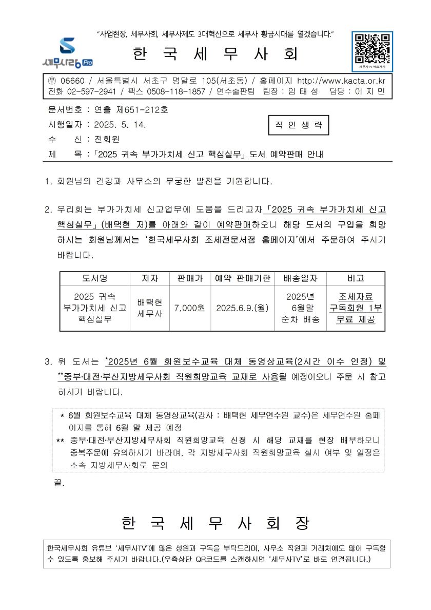 ¡¸2025 ±Í¼Ó ºÎ°¡°¡Ä¡¼¼ ½Å°í Çٽɽǹ«¡¹µµ¼ ¿¹¾àÆÇ¸Å ¾È³»