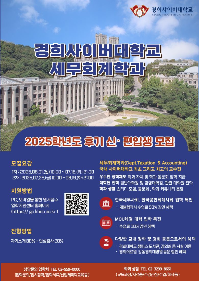 (ºÙÀÓ1)2025-2Çб⠰æÈñ»çÀ̹ö´ëÇб³ ¼¼¹«È¸°èÇаú Çаú ¼Ò°³.pdf (ºÙÀÓ2)°æÈñ»çÀ̹ö´ëÇб³ ¼¼¹«È¸°èÇаú È«º¸ Æ÷½ºÅÍ.jpg (ºÙÀÓ3)2025Çг⵵ ±³À°°úÁ¤ °³¼³Ç¥_¼¼¹«È¸°èÇаú.pdf |
