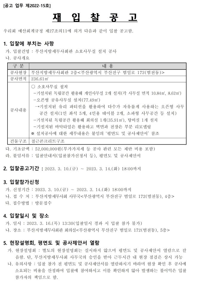±ÛÁ¦¸ñ [ÀçÀÔÂû°ø°í] ºÎ»êÁö¹æ¼¼¹«»çȸ°ü ¼ÒÈ£»ç¹«½Ç ¼³Ä¡ °ø»ç
