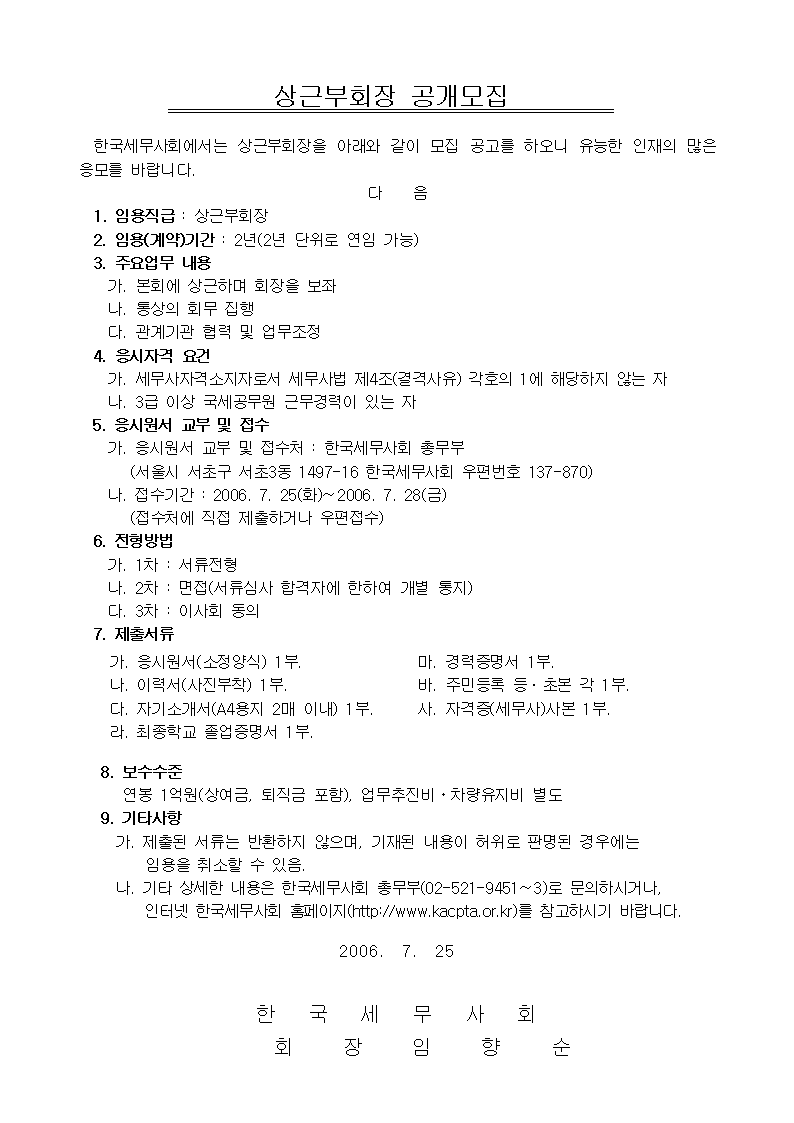 Çѱ¹¼¼¹«»çȸ »ó±ÙºÎȸÀå °ø°³¸ðÁý